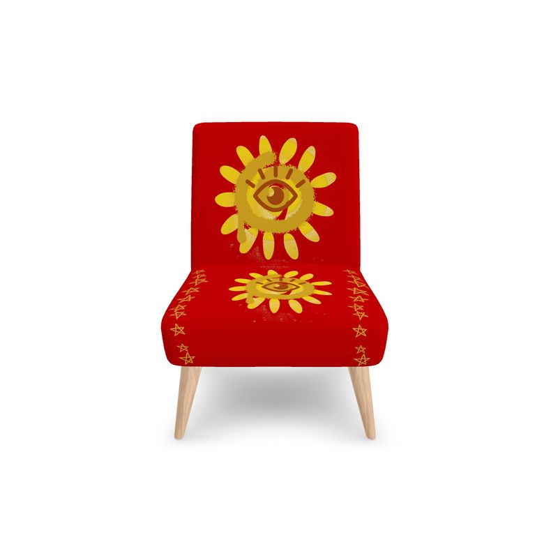 The Celestial Seat is your personal throne for moments of pause and reflection. Crafted with fire-rated velour and responsibly sourced beech wood, this handmade chair elevates any space with bold, high-vibe energy. Measuring 29" tall by 25" wide, it’s designed for those daring enough to own their light. Clean gently by hand to keep its radiant presence shining.